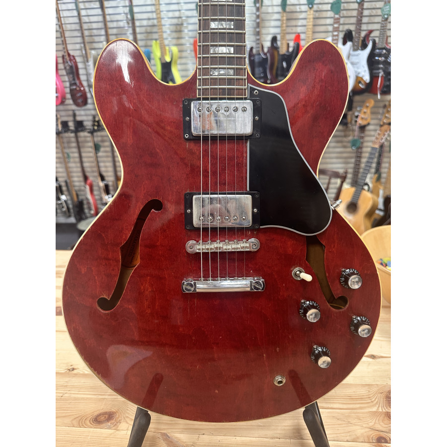 Väldigt fin Gibson ES335 från 1968 Original potar och T-Tops Neck 7,65kOhm Bridge 7,53Kohm Stop Tail Conversion då denna egentligen kom med trapeze stall. Ingen nackdel tycker vi då detta är utseendet man är van vid när det kommer till 335